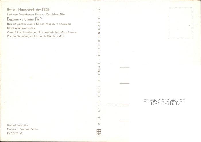 72157362 BERLIN CITY Blick vom Strausberger Platz zur Karl Marx Allee postalisch nicht gelaufen Erhaltung siehe scans KatCode: 11110011000000