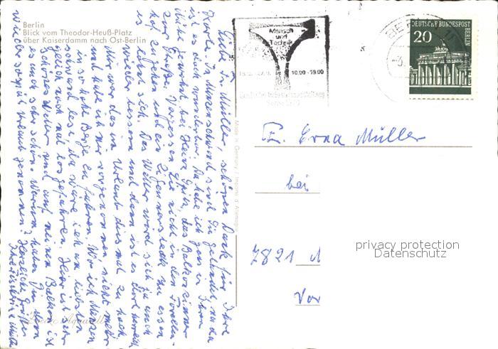 72452154 alte Postkarte BERLIN CITY Blick vom Theodor Heuss Platz ueber Kaiserdamm Kuenstlerkarte postalisch gelaufen Erhaltung siehe scans KatCode: 11110011000000