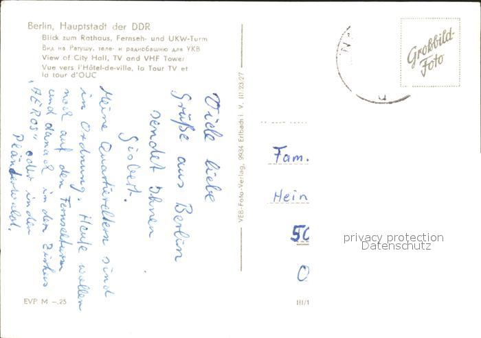 72182389 alte Postkarte BERLIN CITY Blick zum Rathaus und Fernsehturm postalisch gelaufen Erhaltung siehe scans KatCode: 11110011000000