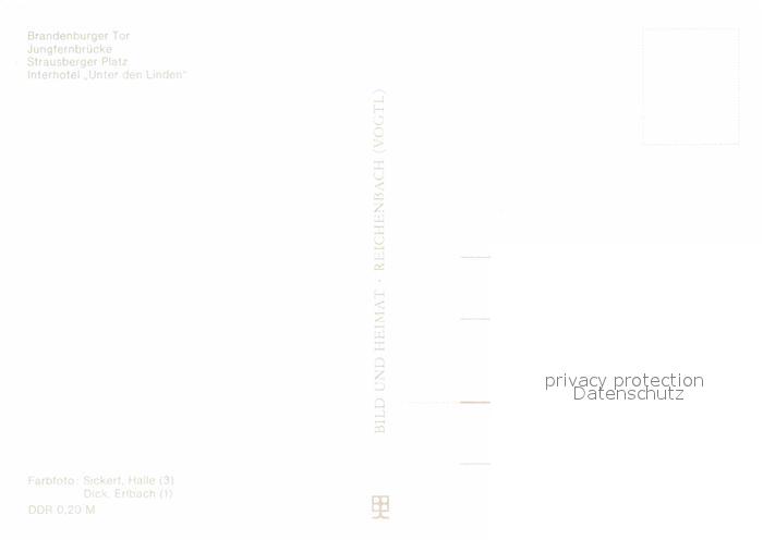 72848308 BERLIN CITY Brandenburger Tor Jungfernbruecke Strausberger Platz Interhotel postalisch nicht gelaufen Erhaltung siehe scans [KathaD81] KatCode: 11110011000000
