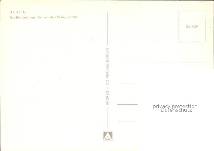 72576156 BERLIN CITY Brandenburger Tor nach dem 13. August 1961 Mauer postalisch nicht gelaufen Erhaltung siehe scans [FriedD77] KatCode: 11110011000000