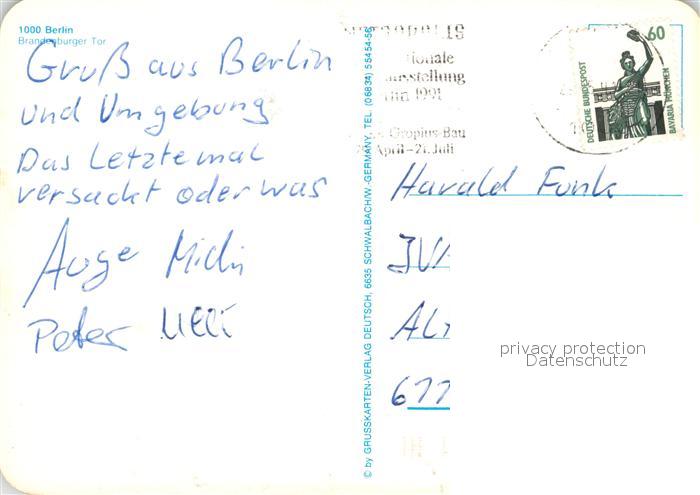 73126816 alte Postkarte BERLIN CITY Brandenburger Tor postalisch gelaufen Erhaltung siehe scans [FriedD77] KatCode: 11110011000000