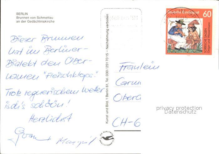 72557591 alte Postkarte BERLIN CITY Brunnen von Schmettau Gedaechtniskirche postalisch gelaufen Erhaltung siehe scans [KathaD79] KatCode: 11110011000000
