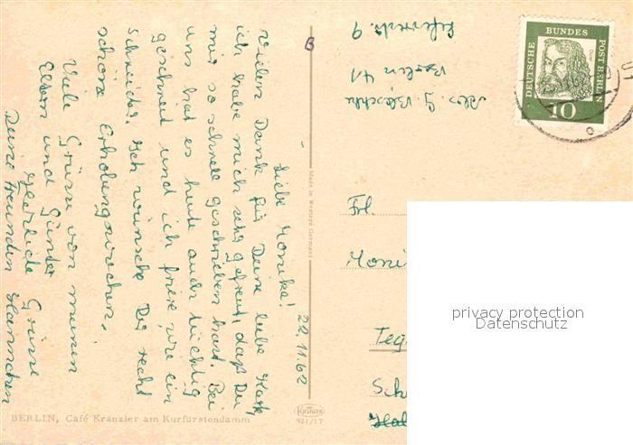 72625771 alte Postkarte BERLIN CITY Cafe Kranzler am Kurfuerstendamm postalisch gelaufen Erhaltung siehe scans [FriedD77] KatCode: 11110011000000