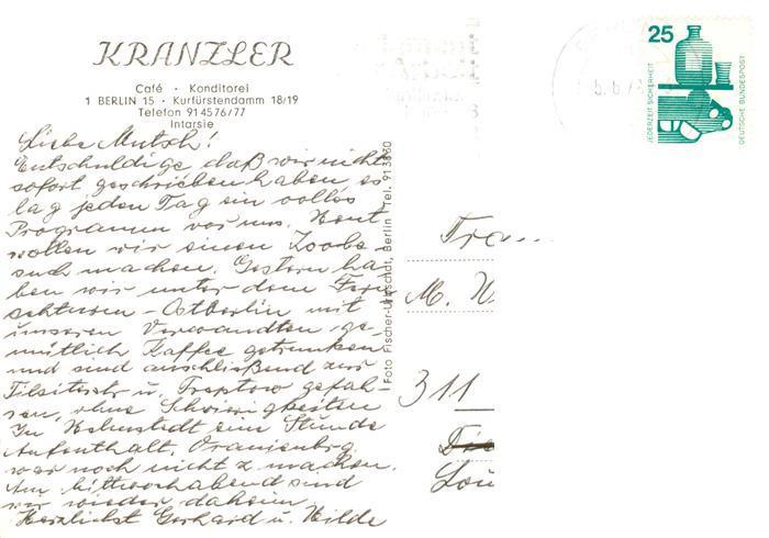 73900261 BERLIN CITY Cafe Kranzler Gastraum postalisch gelaufen Erhaltung siehe scans [WerneD78] alte Postkarte Wern Katcode 11110011000000