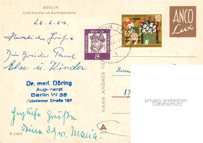 73132268 alte Postkarte BERLIN CITY Cafe Kranzler Kurfürstendamm postalisch gelaufen Erhaltung siehe scans [KathaD81] KatCode: 11110011000000