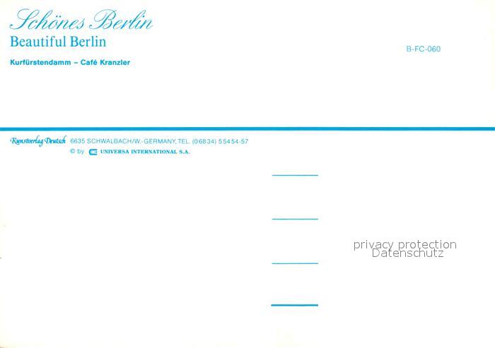 73060915 BERLIN CITY Cafe Kranzler Kurfuerstendamm postalisch nicht gelaufen Erhaltung siehe scans [FriedD77] KatCode: 11110011000000