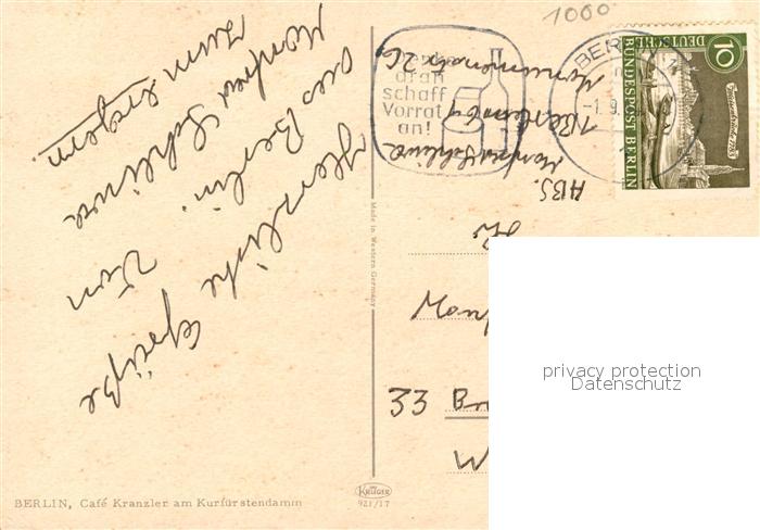 73128841 alte Postkarte BERLIN CITY Cafe Kranzler Kurfuerstendamm postalisch gelaufen Erhaltung siehe scans [KathaD81] KatCode: 11110011000000