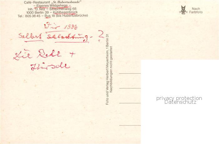 73859840 BERLIN CITY Cafe Restaurant St Hubertusbaude Terrasse Gastraum Wildgehege postalisch nicht gelaufen Erhaltung siehe scans [WerneD78] Wern Katcode 11110011000000