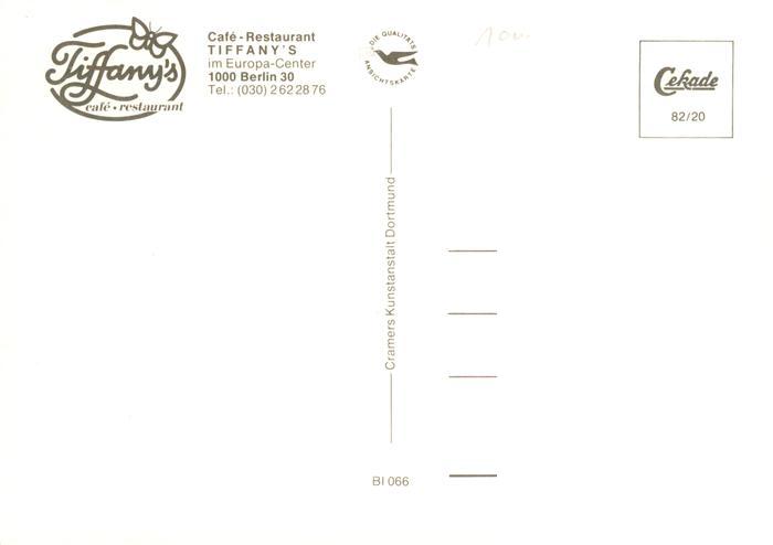 73942363 BERLIN CITY Café Restaurant Tiffany’s im Europa-Center postalisch nicht gelaufen Erhaltung siehe scans [FriedD77] Frie Katcode 11110011000000