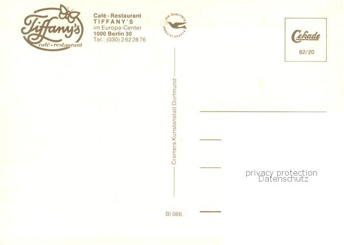 73764403 BERLIN CITY Cafe Restaurant Tiffanys postalisch nicht gelaufen Erhaltung siehe scans [FriedD77] Frie Katcode 11110011000000