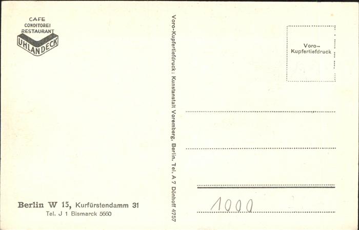 41241268 BERLIN CITY Cafe Uhlandeck postalisch nicht gelaufen gute Erhaltung Alte Ansichtskarte Postkarte Chri Katcode 11110011000000