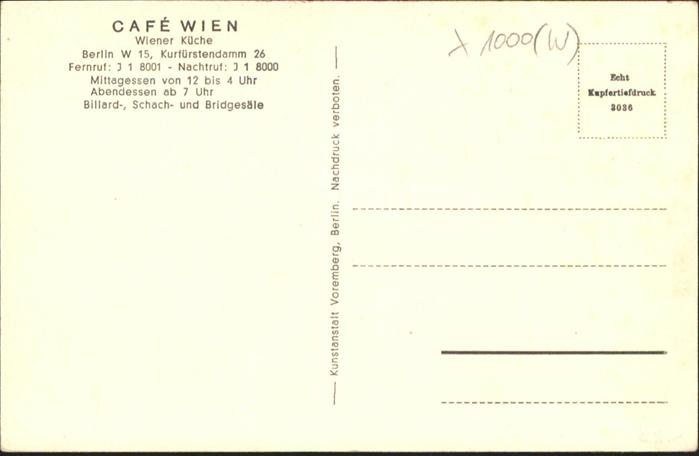 40988780 BERLIN CITY Cafe Wien postalisch nicht gelaufen Alte Ansichtskarte Postkarte Katcode 11110011000000