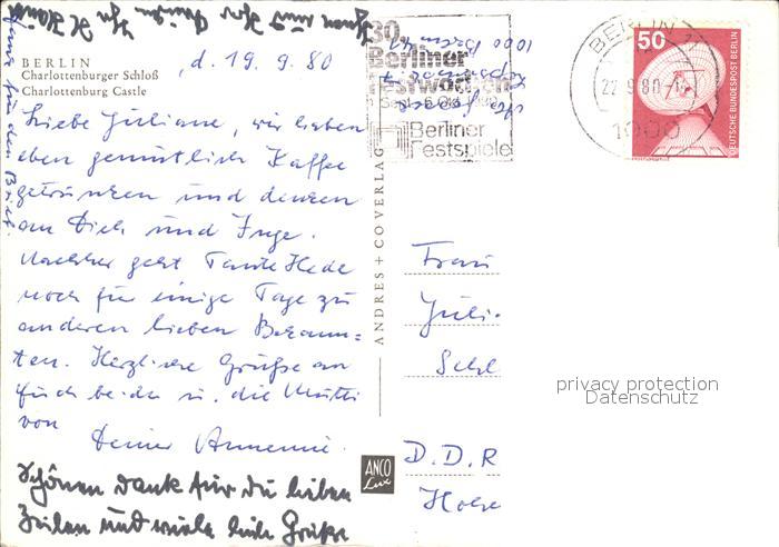 72448624 alte Postkarte BERLIN CITY Charlottenburger Schloss postalisch gelaufen Erhaltung siehe scans KatCode: 11110011000000