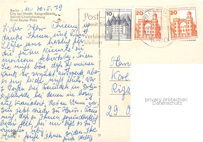 73022698 alte Postkarte BERLIN CITY City bei Nacht Kongresshalle Schloss Charlottenburg Ernst Reuter Platz postalisch gelaufen Erhaltung siehe scans [WerneD78] KatCode: 11110011000000
