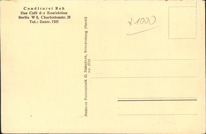 41221305 BERLIN CITY Conditorei Reh postalisch nicht gelaufen gute Erhaltung Alte Ansichtskarte Postkarte hz_U Katcode 11110011000000