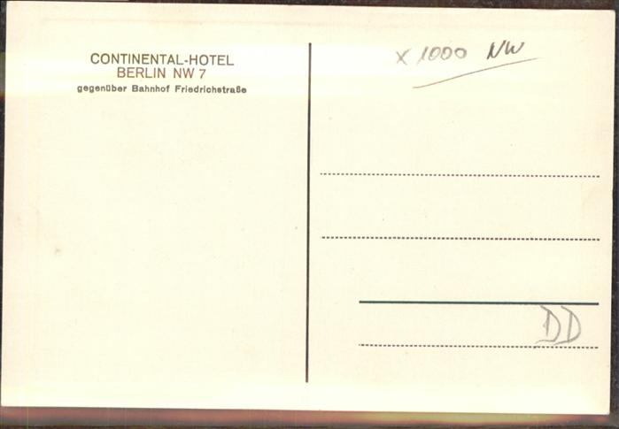 41039089 BERLIN CITY Continental-Hotel postalisch nicht gelaufen Alte Ansichtskarte Postkarte Chri Katcode 11110011000000