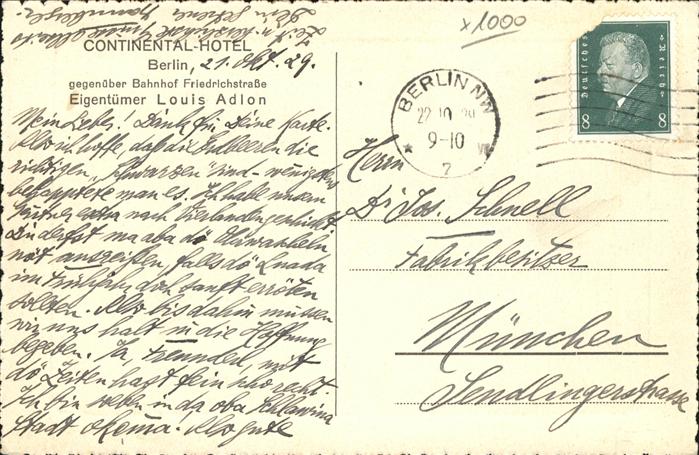 41240990 BERLIN CITY Continental-Hotel postalisch gelaufen gute Erhaltung Alte Ansichtskarte Postkarte alte Postkarte Chri Katcode 11110011000000