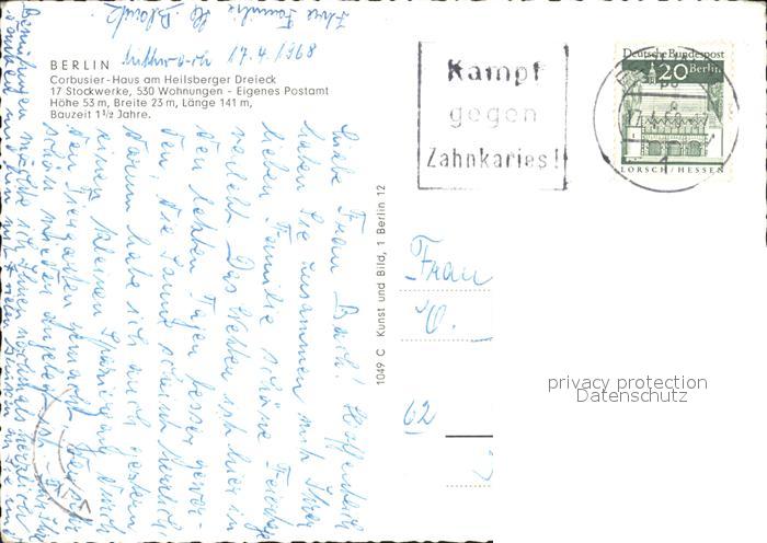 72133163 alte Postkarte BERLIN CITY Corbusier Haus Heilsberger Dreieck postalisch gelaufen Erhaltung siehe scans KatCode: 11110011000000