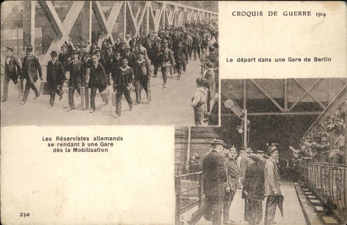 41392057 BERLIN CITY Croquis de Guerre 1914 Depart Gare Deutsche Reservisten Bahnhof Weltkrieg postalisch nicht gelaufen gute Erhaltung Alte Ansichtskarte Postkarte hz_F Katcode 11110011000000