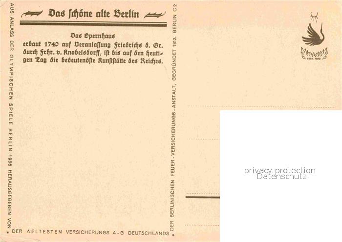 72902022 BERLIN CITY Das Opernhaus postalisch nicht gelaufen Erhaltung siehe scans [WerneD78] KatCode: 11110011000000