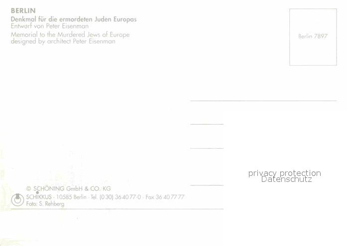 72892836 BERLIN CITY Denkmal fuer die ermordetten Juden Europas postalisch nicht gelaufen Erhaltung siehe scans [AndreD76] KatCode: 11110011000000