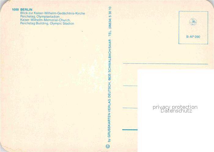 72852804 BERLIN CITY det iss dufte Kaiser Wilhelm Gedaechtniskirche Reichstag Olympiastadion postalisch nicht gelaufen Erhaltung siehe scans [FriedD77] KatCode: 11110011000000