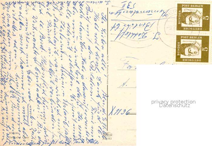 72919449 alte Postkarte BERLIN CITY Deutsche Oper postalisch gelaufen Erhaltung siehe scans [FriedD77] KatCode: 11110011000000