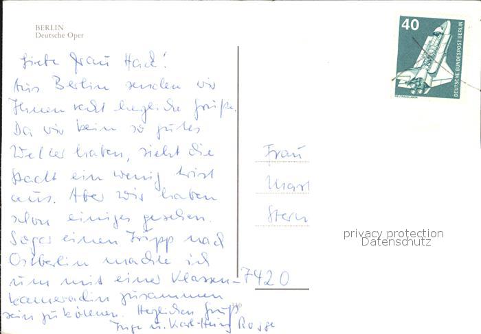 72461998 alte Postkarte BERLIN CITY Deutsche Oper postalisch gelaufen Erhaltung siehe scans KatCode: 11110011000000