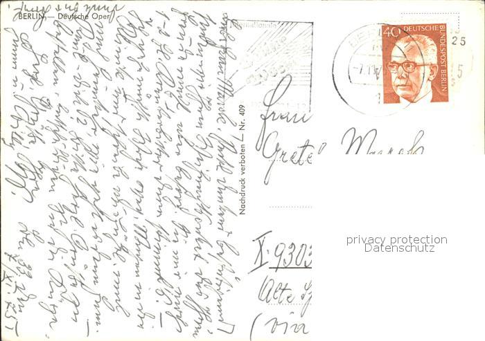 72248120 alte Postkarte BERLIN CITY Deutsche Oper postalisch gelaufen Erhaltung siehe scans KatCode: 11110011000000