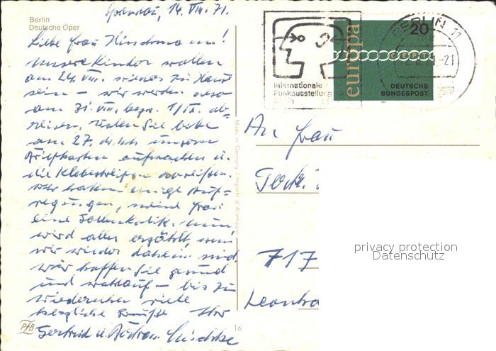72156825 alte Postkarte BERLIN CITY Deutsche Oper postalisch gelaufen Erhaltung siehe scans KatCode: 11110011000000