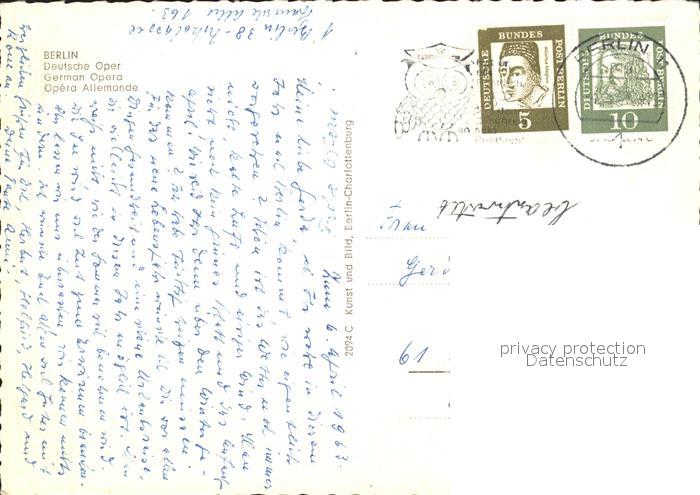 72148670 alte Postkarte BERLIN CITY Deutsche Oper postalisch gelaufen Erhaltung siehe scans KatCode: 11110011000000