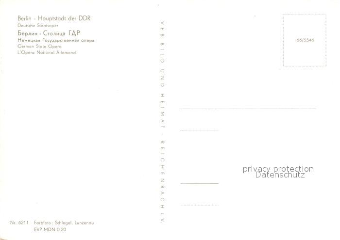 72998409 BERLIN CITY Deutsche Staatsoper postalisch nicht gelaufen Erhaltung siehe scans [WerneD78] KatCode: 11110011000000