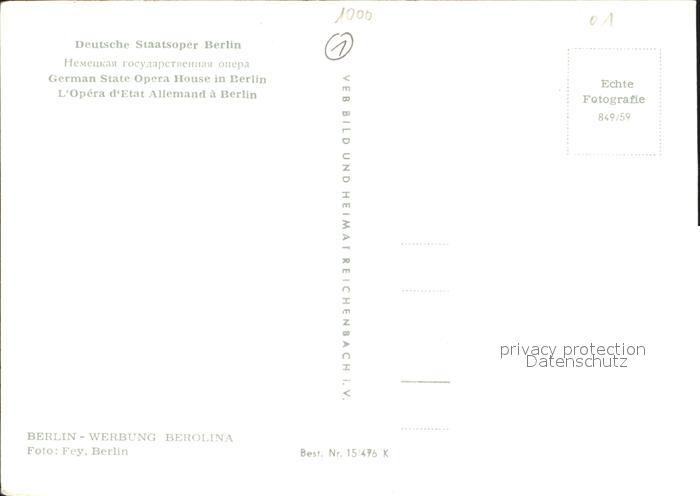 72148608 BERLIN CITY Deutsche Staatsoper postalisch nicht gelaufen Erhaltung siehe scans KatCode: 11110011000000