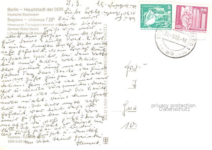 73059416 alte Postkarte BERLIN CITY Deutsche Staatsoper postalisch gelaufen Erhaltung siehe scans [WerneD78] KatCode: 11110011000000