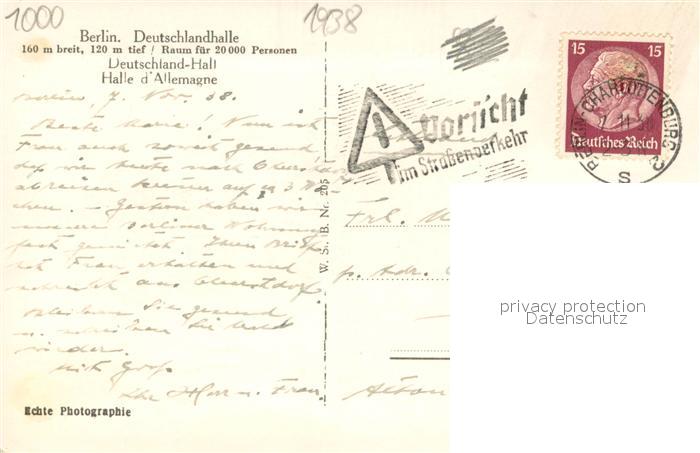 73710362 BERLIN CITY Deutschlandhalle postalisch gelaufen Erhaltung siehe scans [LiesaD40] alte Postkarte Lies Katcode 11110011000000