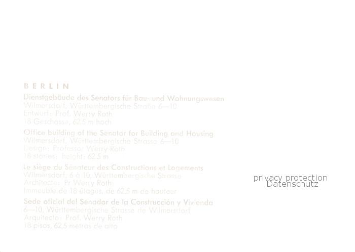 73757098 BERLIN CITY Dienstgebaeude d. Senators f. Bau- u. Wohnungswesen postalisch nicht gelaufen Erhaltung siehe scans [LiesaD40] Lies Katcode 11110011000000