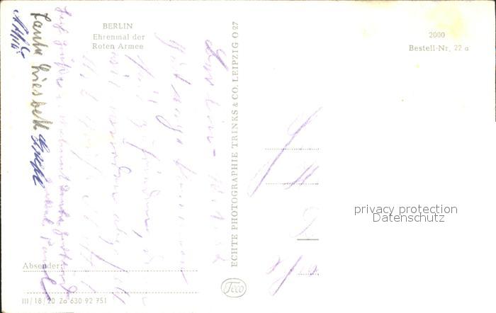 72361173 BERLIN CITY Ehrenmal der Roten Armee postalisch nicht gelaufen Erhaltung siehe scans KatCode: 11110011000000