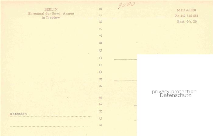 72868683 BERLIN CITY Ehrenmal der Sowjetischen Armee in Treptow postalisch nicht gelaufen Erhaltung siehe scans [LiesaD40] KatCode: 11110011000000