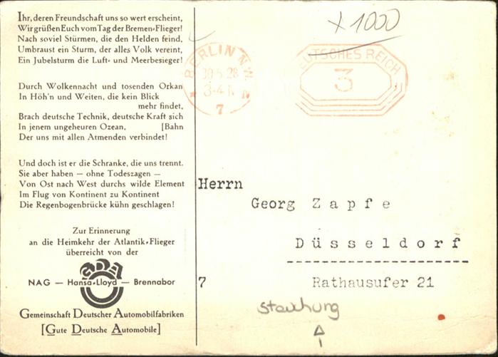 40989123 BERLIN CITY Einzug der Ozean-flieger in Berlin am 20. Juni 1928 postalisch nicht gelaufen Alte Ansichtskarte Postkarte Katcode 11110011000000