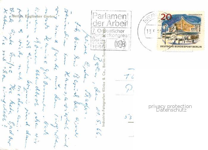 72899645 alte Postkarte BERLIN CITY Englischer Garten postalisch gelaufen Erhaltung siehe scans [PaolaD17] KatCode: 11110011000000