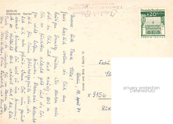 72872182 alte Postkarte BERLIN CITY Englischer Garten postalisch gelaufen Erhaltung siehe scans [LiesaD40] KatCode: 11110011000000