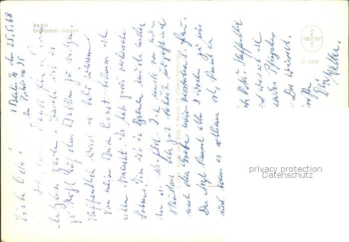 72408251 BERLIN CITY Englischer Garten postalisch nicht gelaufen Erhaltung siehe scans KatCode: 11110011000000