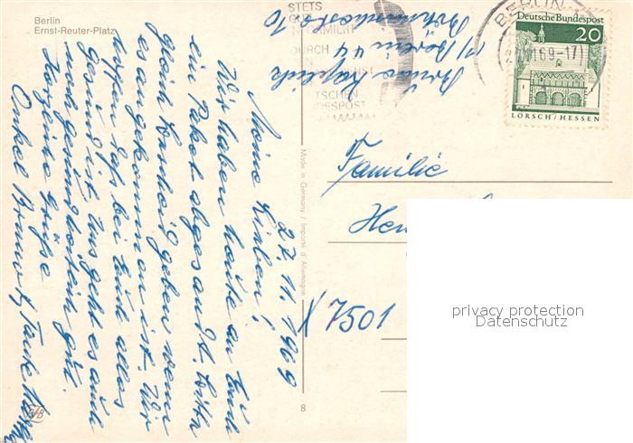 72948705 alte Postkarte BERLIN CITY Ernst-Reuter-Platz postalisch gelaufen Erhaltung siehe scans [NatalD47] KatCode: 11110011000000