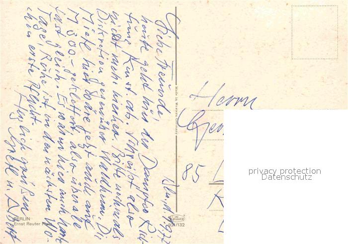 72900062 alte Postkarte BERLIN CITY Ernst Reuter Platz postalisch gelaufen Erhaltung siehe scans [AndreD76] KatCode: 11110011000000