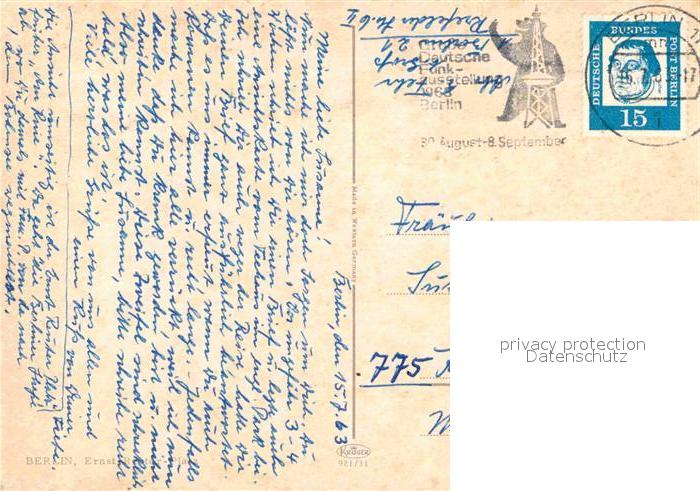 72769997 alte Postkarte BERLIN CITY Ernst Reuter Platz postalisch gelaufen Erhaltung siehe scans [AndreD76] KatCode: 11110011000000