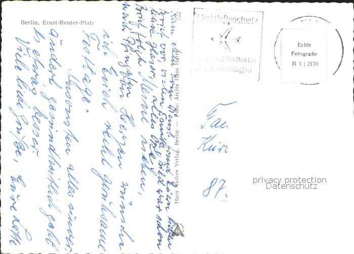 72148699 alte Postkarte BERLIN CITY Ernst Reuter Platz postalisch gelaufen Erhaltung siehe scans KatCode: 11110011000000