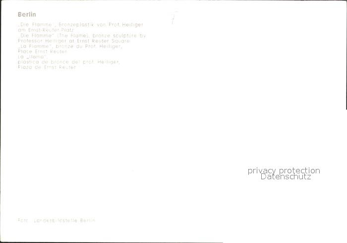 72147669 BERLIN CITY Ernst-Reuter-Platz Plastik Die Flamme von Prof. Heiliger postalisch nicht gelaufen Erhaltung siehe scans KatCode: 11110011000000