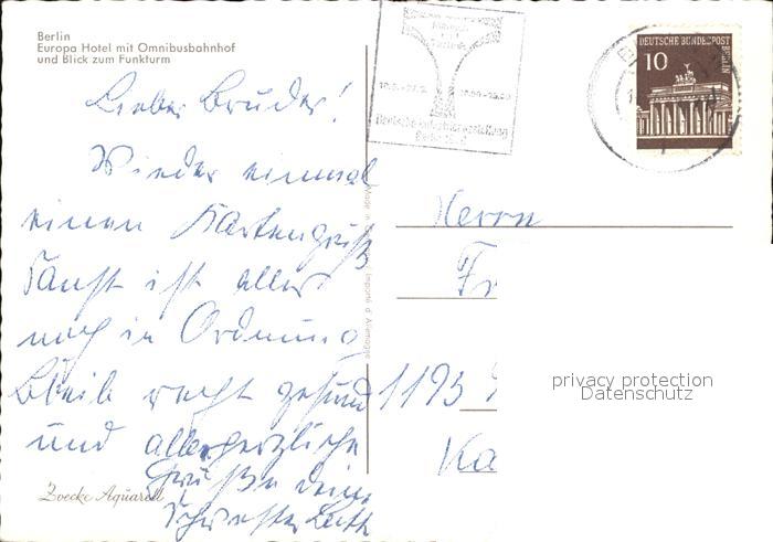 72452153 alte Postkarte BERLIN CITY Europa-Hotel mit Funkturm Kuenstlerkarte postalisch gelaufen Erhaltung siehe scans KatCode: 11110011000000