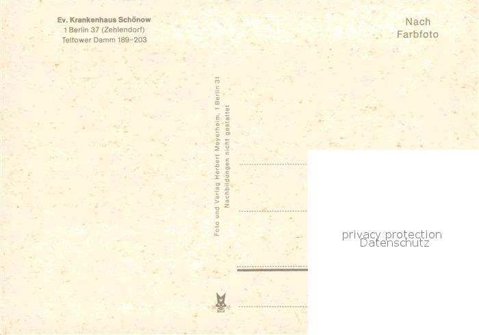 72927279 BERLIN CITY Evangelisches Krankenhaus Schoenoe postalisch nicht gelaufen Erhaltung siehe scans [KathaD81] KatCode: 11110011000000